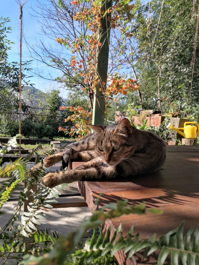 由於小犬颱風才剛離開台灣不久,山區的氣候仍不太穩定,每天的下午及傍晚時分都會下起一陣不小的雨,我們通常是利用上午天氣晴朗的時候去各景點逛逛,眼見天色昏暗雨勢將起時,就回到民宿耍廢逗貓睡午覺。