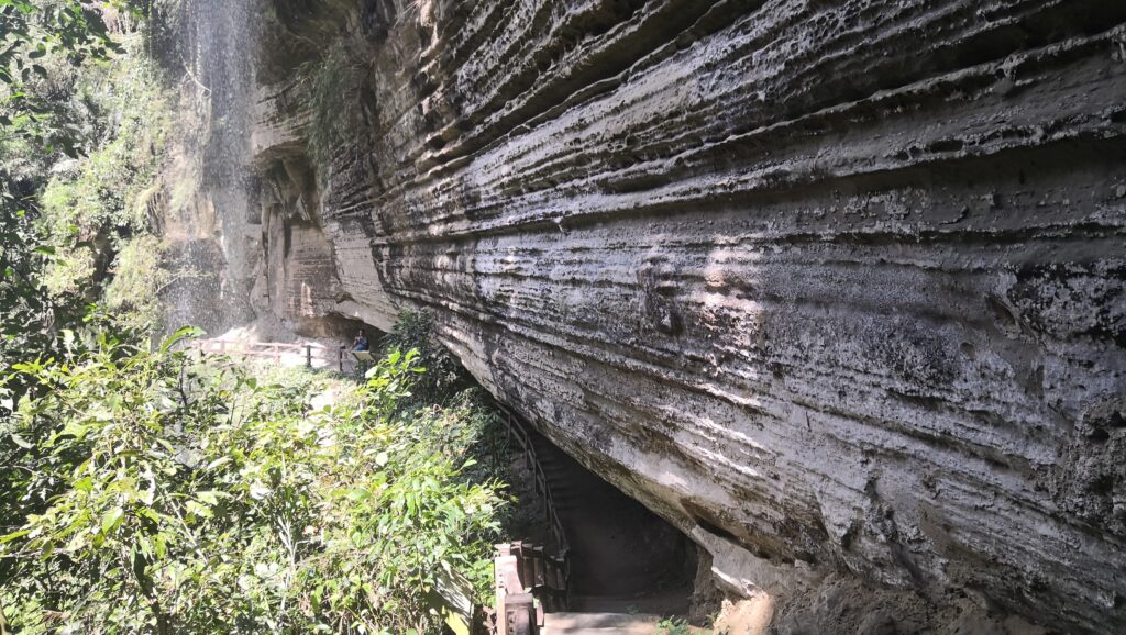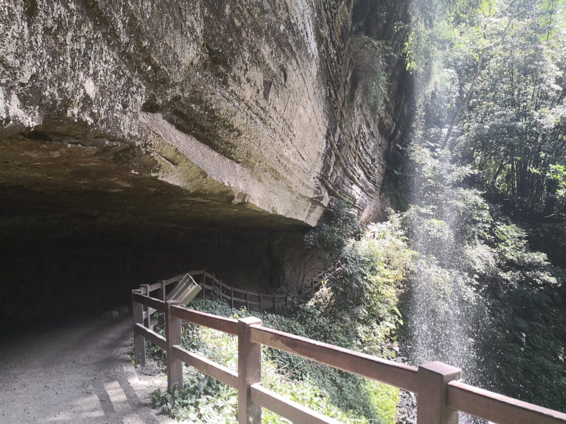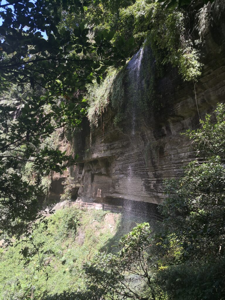 ▲巨岩上方飛瀑垂墜而下,彷彿是武俠小說中高手修練的場景
