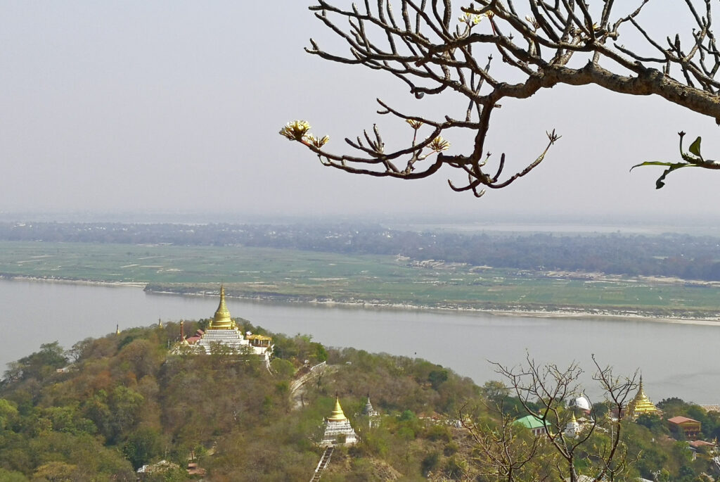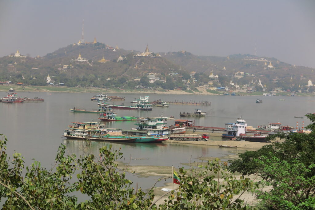▲伊洛瓦底江對岸的實皆省,山頂上豎立著許多佛塔